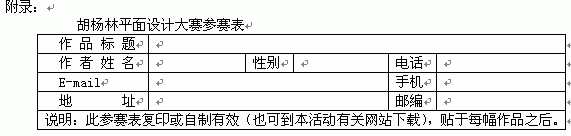 收件人:胡杨林平面设计大赛组委会