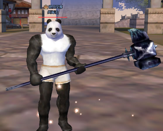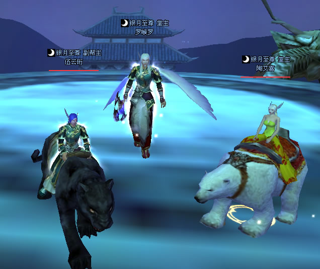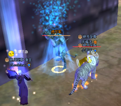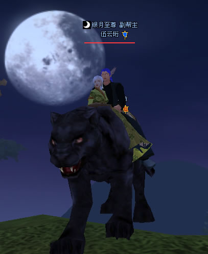 我的小号化身为白虎,驼着老婆,一起观赏cloudchan在和怪物奋力搏杀,给他加油……