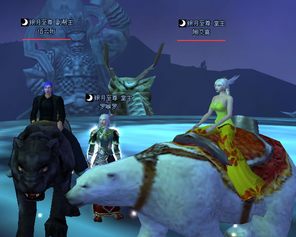 嘿嘿,我骑着黑豹,豆子很抠门,还没买坐骑,每天就是飞来飞去。所以他只好比我矮一截。