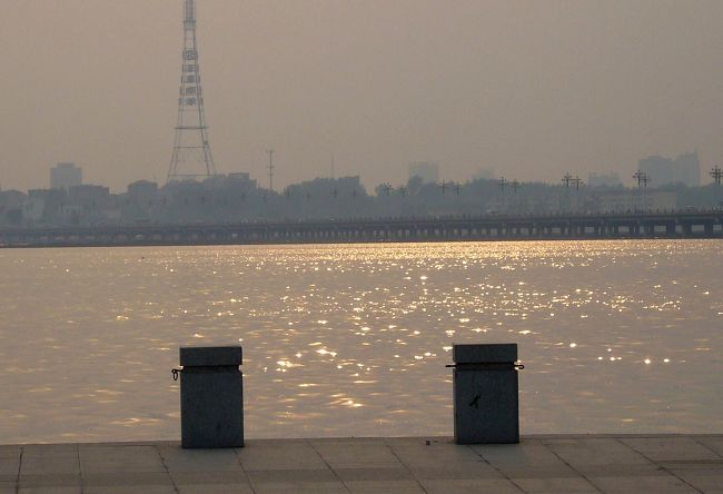 落日余晖 霞光洒在静静的河面上