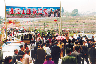 2004年3月15日3万多游客涌入兴义万亩桃花谷观赏三月桃花——