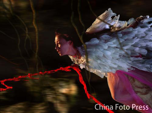 亦幻亦真的裳:王妃倾城拥有多套华衣霓裳,最惊艳的四套分别是王妃华服、千羽衣、海棠服和情欲服。王妃倾城第一次亮相时,身着一件金色与黑色相间的斗篷。在黑色的斗篷内,是绯红、浅绿和鹅黄逐层递进的内服,不仅透明度逐渐增强,充满诱惑,这些内服上还有大量同色蝴蝶结,暗示倾城被束缚的宫廷生活。千羽衣由千万根雪白鹅毛织成,从颈部直垂至地,庞大华丽,是倾城被俘获时的俘虏服。海棠服上有请北京荣宝斋的师傅亲自手绘的海棠花树,象征欲望与生死。身着这套衣服,倾城经历了海棠精舍里一场生死之恋。而情欲服则是叶锦添特意为倾城和光明设计的激情之服。这套衣服通体透明,在细节处绘有暗花,让人想象无限又全无邪恶之感。穿着这套情欲服,倾城与光明有一段缠绵情事。